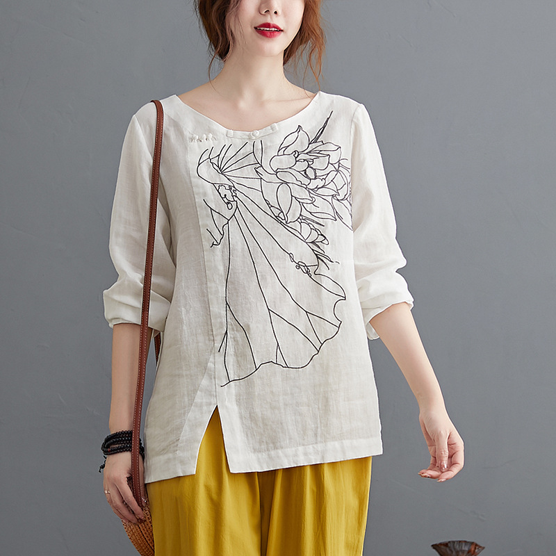 商品名:女性用アーティスティックコットンリネン長袖シャツ